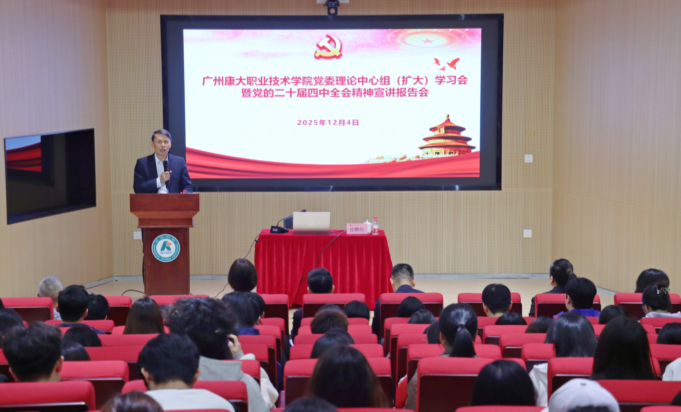 我校召开党委理论中心组(扩大)学习会暨党的二十届四中全会精神宣讲报告会为深入学习宣传贯彻党的二十届四中全会精神,12月4日,我校在综合楼110报告厅召开党委理论中心组(扩大)暨党的二十届四中全会精神宣讲报告会,特别邀请了广东省委党的二十届四中全会宣讲团成员任映红教授作专...082025-12 -